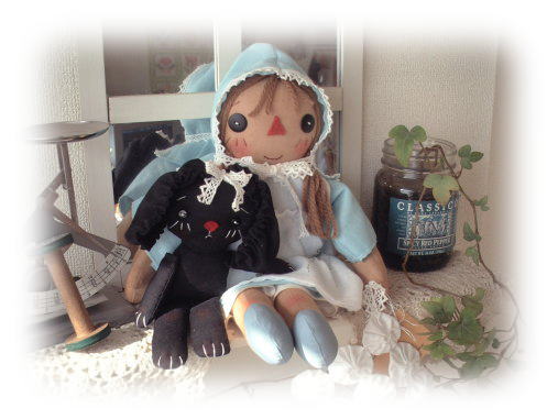 頭巾もブルーのアリスちゃん♪